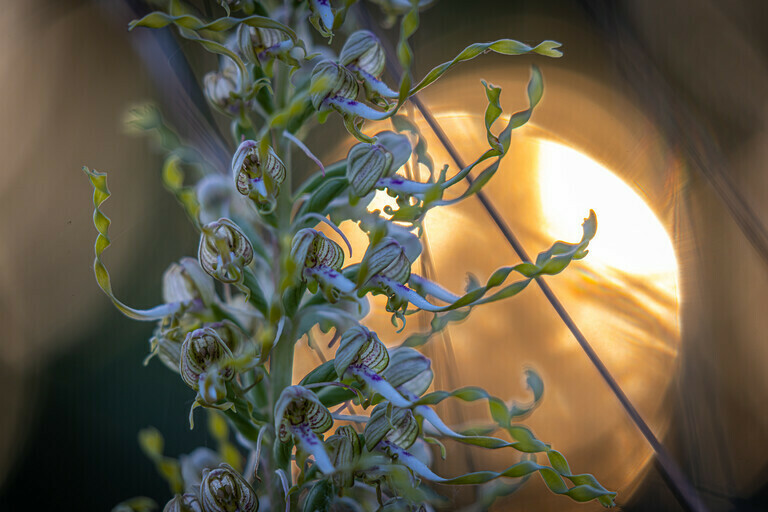 Bocksriemenzunge zum Sonnenuntergang